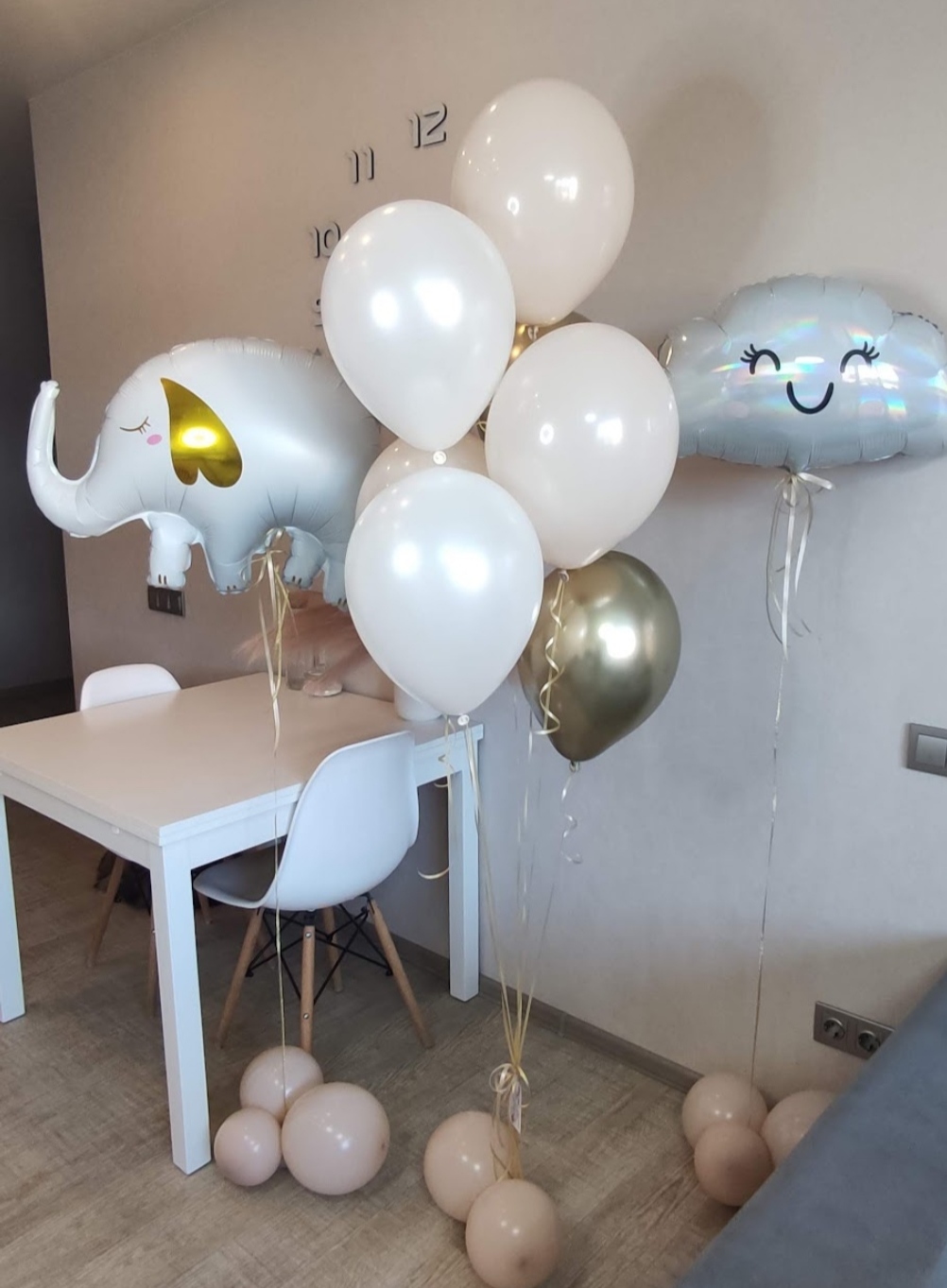 Состав сета: связка из 7 шаров, фольгированное облако и слоненок.