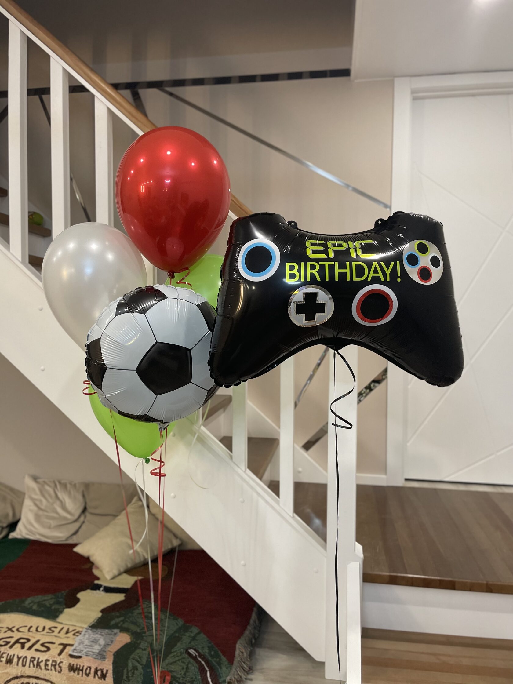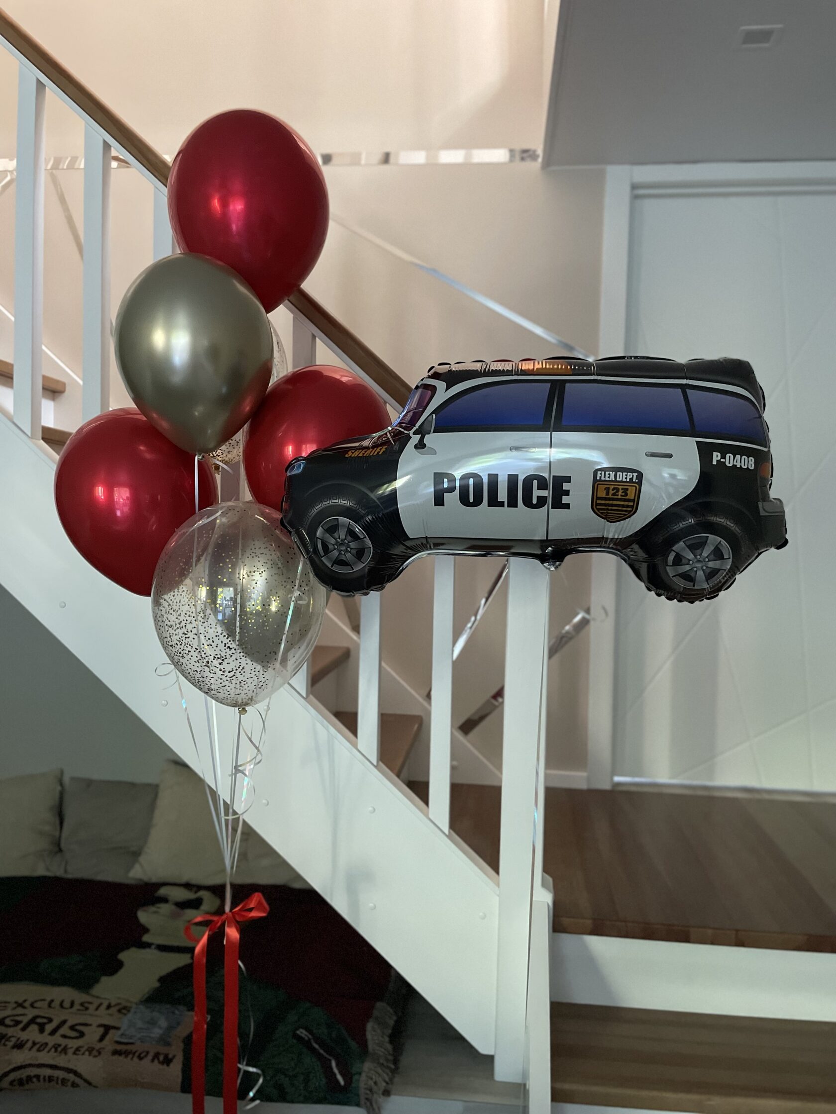 Сет из 7 разнокалиберных шаров, включая баблс 40 см, хром 45 см, 2 шара 45 см, сердце и 2 стандартных шара