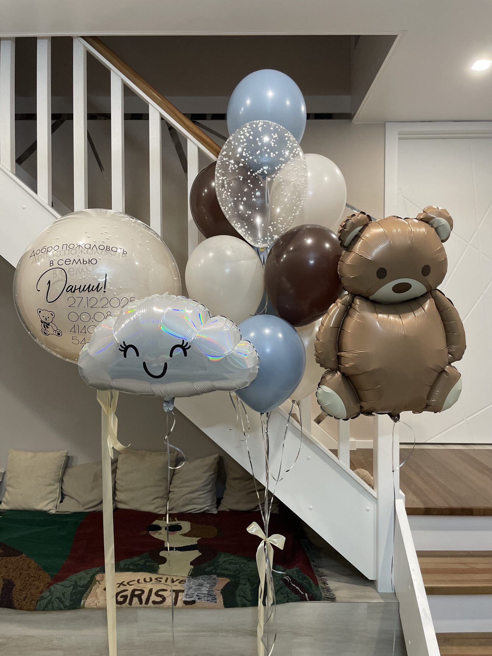Состав сета: связка из 10 Шаров, стеклянный гигант, мишка и облачко